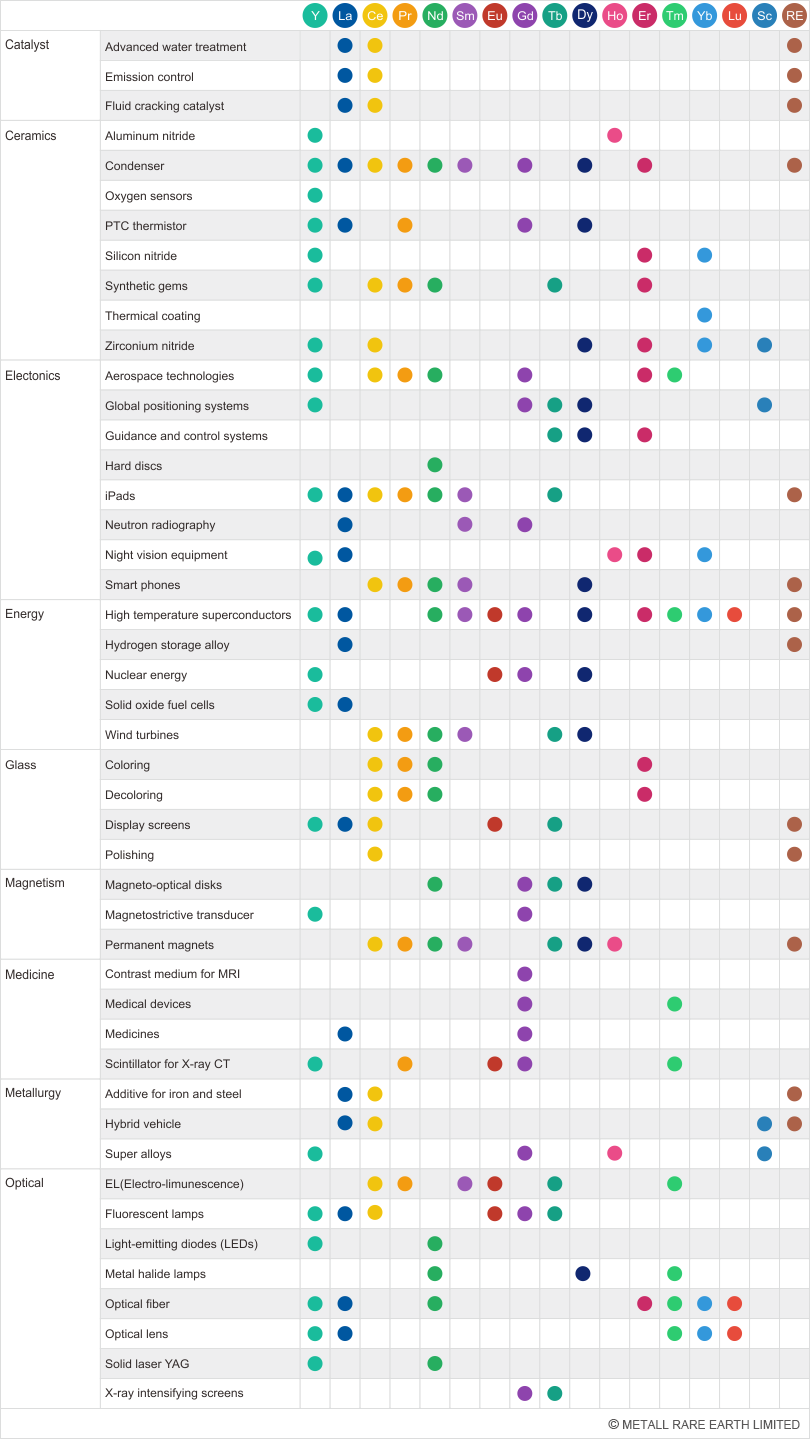 "The key of innovation!", the Rare Earth elements have had a unique and important impact on our lives, especially in the industrial age of the twentieth century. This trend is certain to continue in the twenty-first century as research and development efforts uncover new applications for these little known materials in our increasingly high-tech world. The unsaturated 4f electronic structure of rare earth elements makes them have special properties in luminescence, magnetism and electronics, which could be used to develop many new materials such as phosphors, magnetic and magnetostrictive materials, hydrogen storage materials and catalysts.